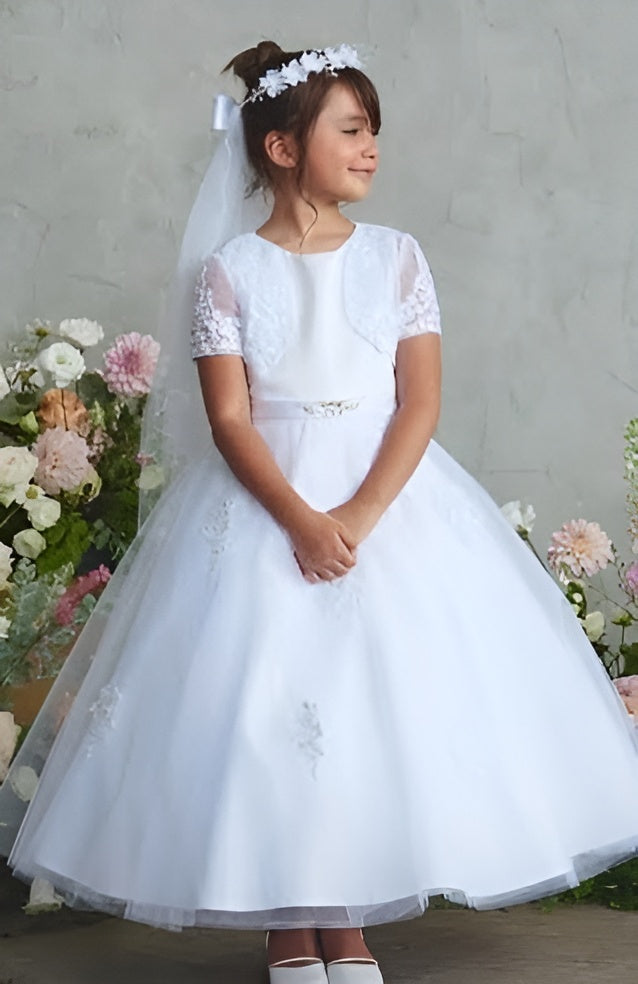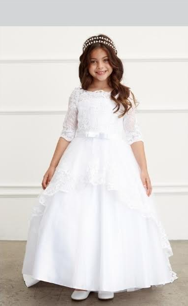 First Communion Dress Our Lady Of Guadalupe Double Spaghetti Strap Lace Bodice With Split Skirt