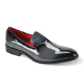 Step into subtle sophistication with the 7009 After Midnight Black Patent Leather Slip on Shoes, designed for men who want standout style with a refined, modern edge. Featuring a sleek grey patent exterior paired with a plush velvet upper, this loafer blends texture and shine for an elevated, fashion-forward look. The signature gold bar detail adds a touch of luxury, while the red interior lining brings a bold designer finish that makes the shoe unforgettable.