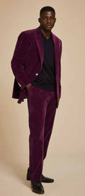 A luxurious velvet blazer designed with a single-breasted silhouette, featuring a notched or peak lapel, a two-button closure, and flap pockets for a refined look. The velvet fabric gives it a soft, rich texture with a subtle sheen, perfect for formal events, evening outings, or adding a touch of elegance to smart-casual outfits. Slim-fit tailoring enhances the silhouette, making it versatile for pairing with dress pants, chinos, or even dark denim.